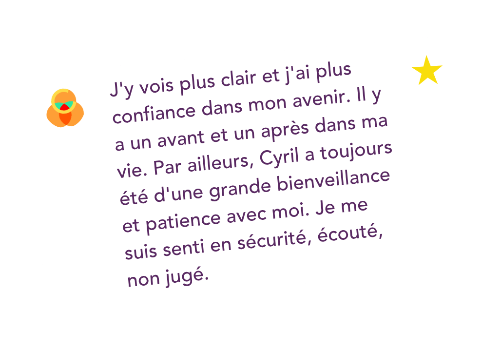 Chaque séance fait le point sur votre évolution et vos priorités. L’accompagnement s’ajuste en continu, avec des outils et exercices adaptés à votre vécu.